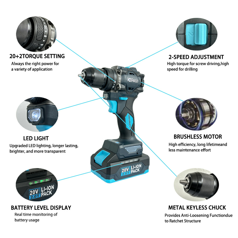 브러시 드릴은 적절한 양의 전력을 제공 할 수 있지만 브러시리스 드릴은 일반적으로 가장자리를 갖습니다. 브러시리스 드릴의 전자 컨트롤러는 하중에 따라 전원 출력을 동적으로 조정할 수 있습니다. 이를 통해 도구는 무거운 하중에서 속도를 유지하고 필요할 때 더 많은 토크를 제공 할 수 있으므로, 이는 힘든 재료를 통해 드릴링하거나 큰 패스너를 구동하는 데 중요합니다. 현대식 무선 드릴은 고전압 배터리와 고급 모터 설계를 통해 점점 더 강력 해지고 있습니다.